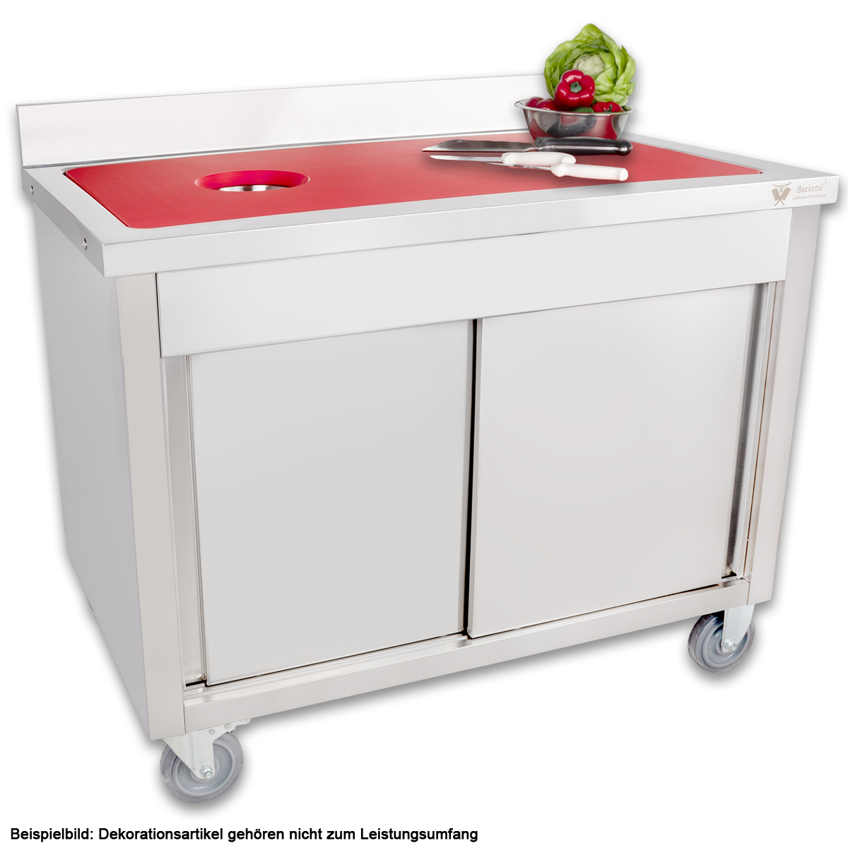 Mit einer Aussparung in der Arbeitsfläche für den anfallenden Abfall ausgestattet