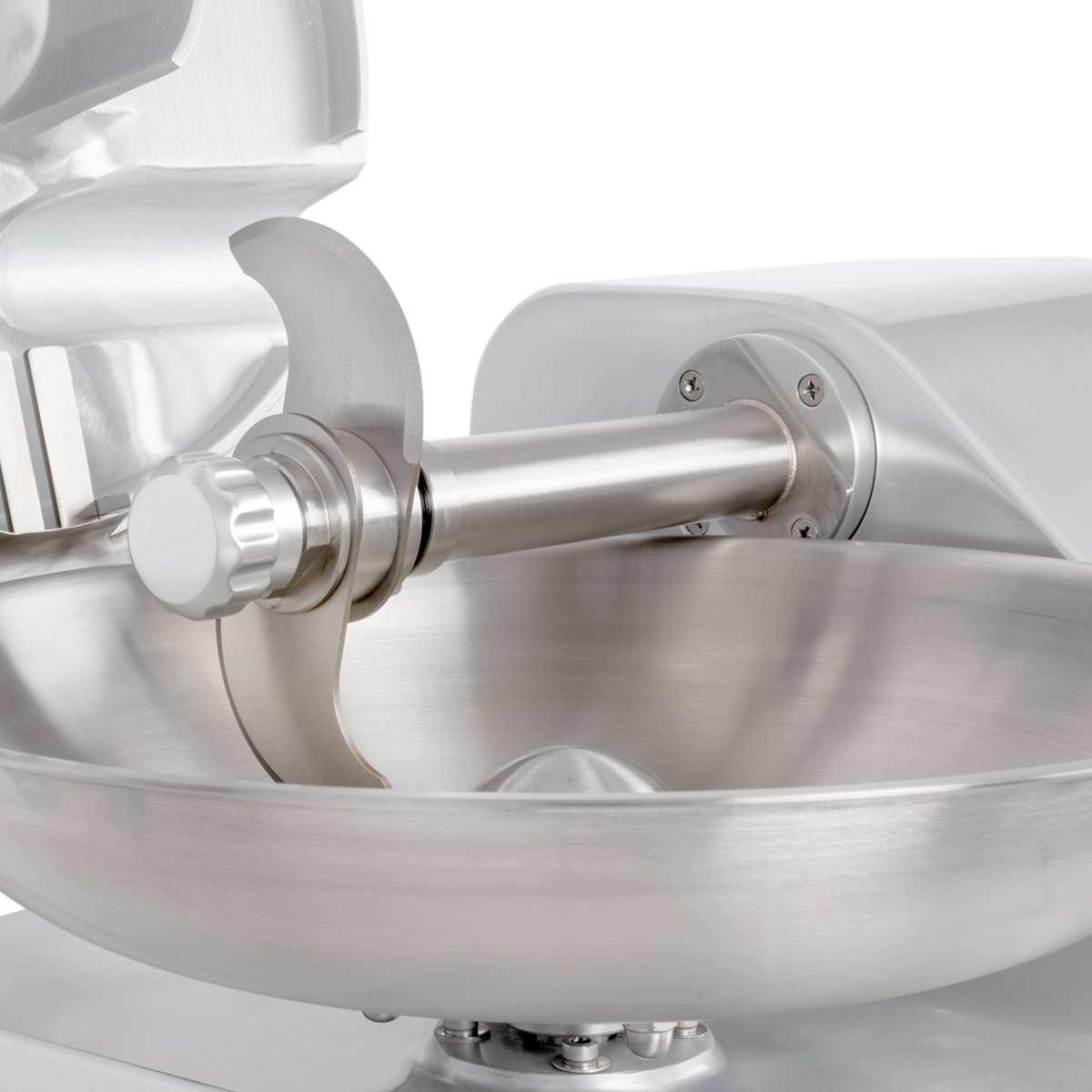 Schüssel, Messer sowie Messerwelle aus Edelstahl gefertigt