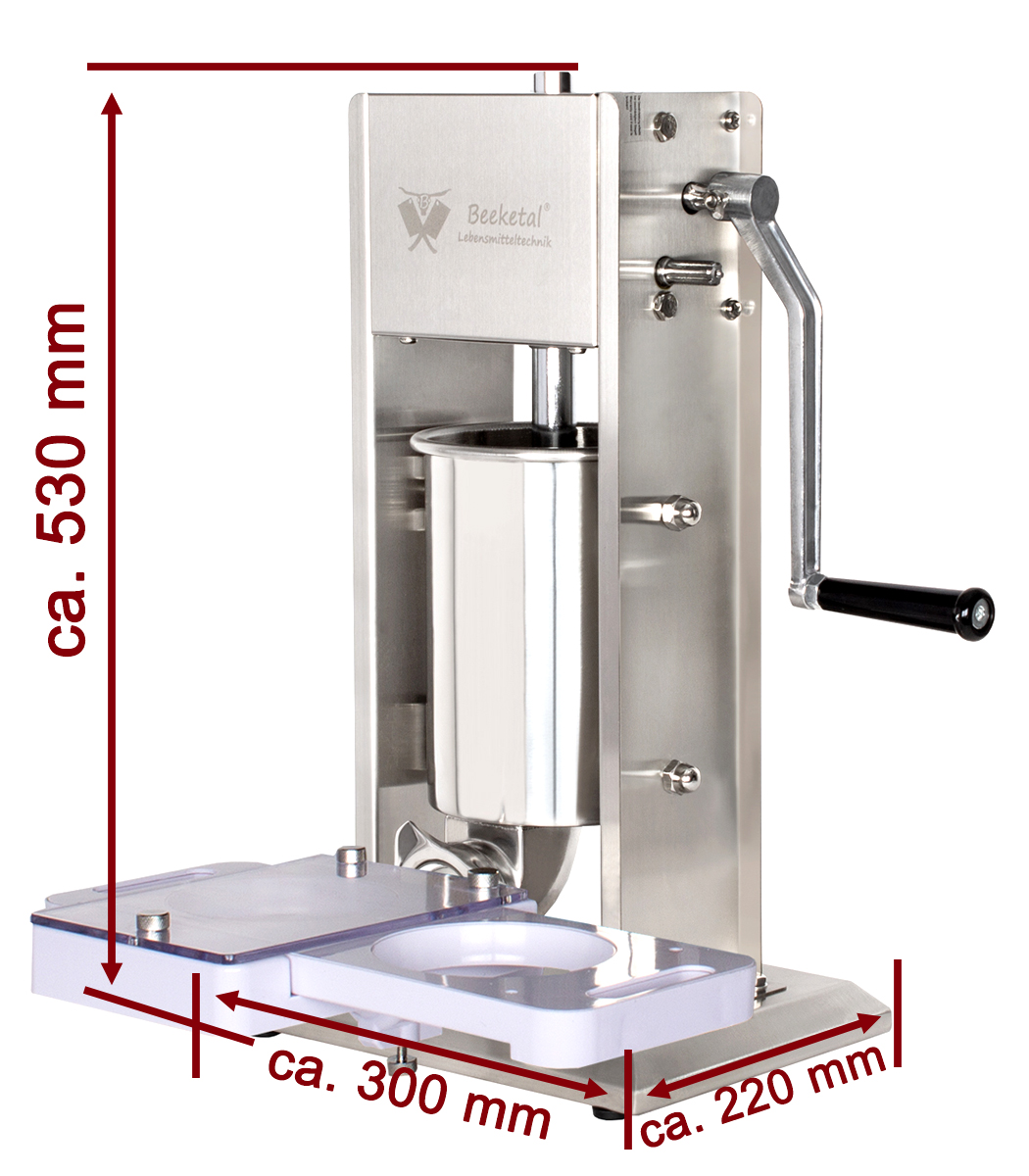 Der Beeketal Wurstfüller hat ein 3 Liter Fassungsvermögen und ist komplett aus hochwertigem, rostfreiem Edelstahl gefertigt.