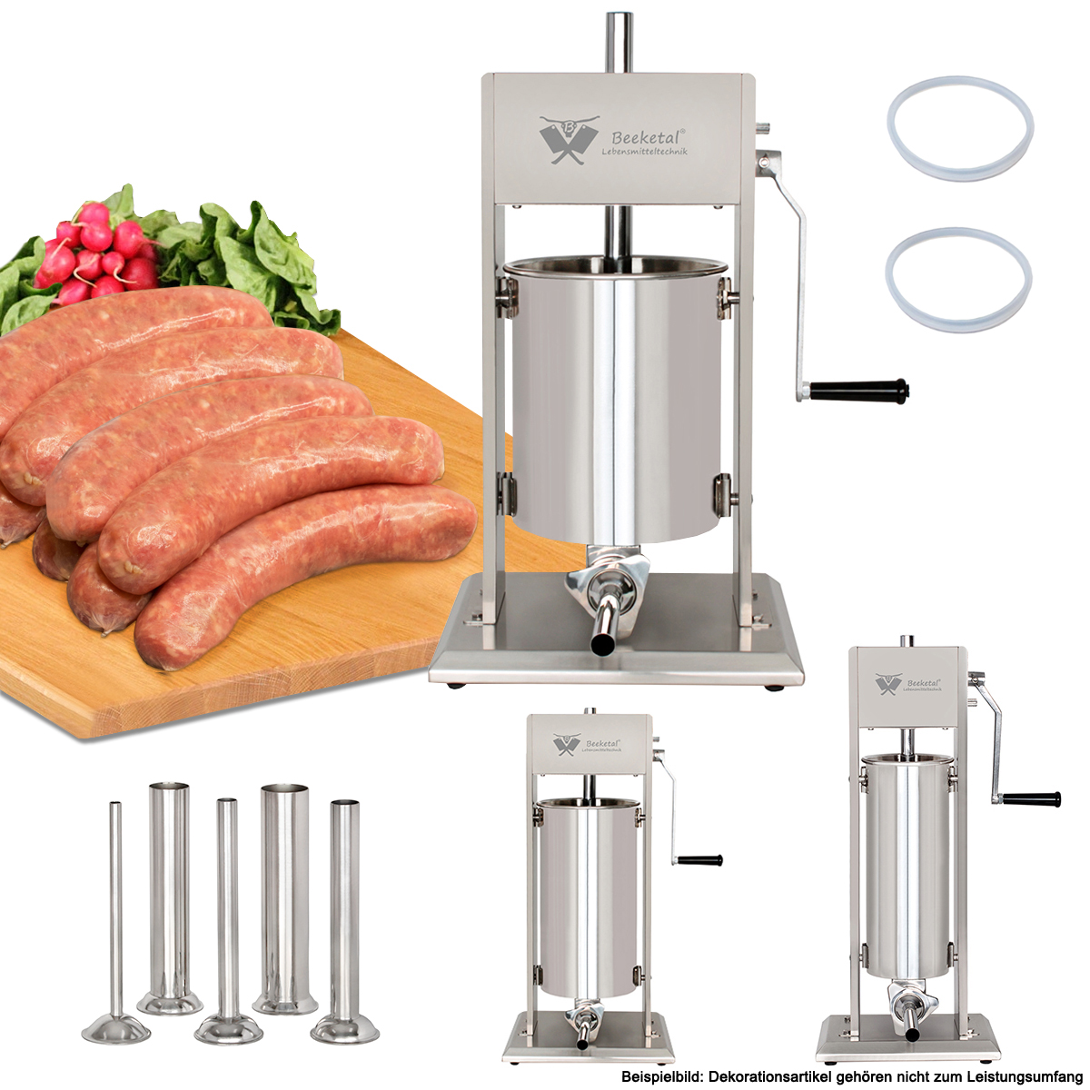 Beeketal Edelstahl Wurstfüller BT/BTH-Serie 3-15L inkl. 5 Fülltüllen + 3 Dichtungen