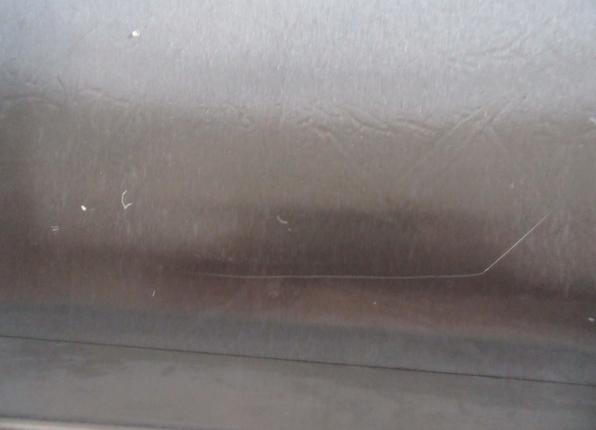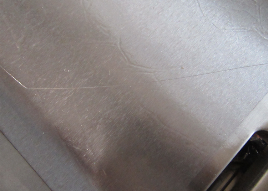 Die Grillplatte weist einen Kratzer auf der Grillfläche auf.